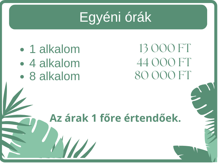 - KÉRLEK AMENNYIBEN ELŐSZÖR JÁRSZ NÁLUNK, MINDENKÉPP EGY EGYÉNI ÓRÁRA GYERE!