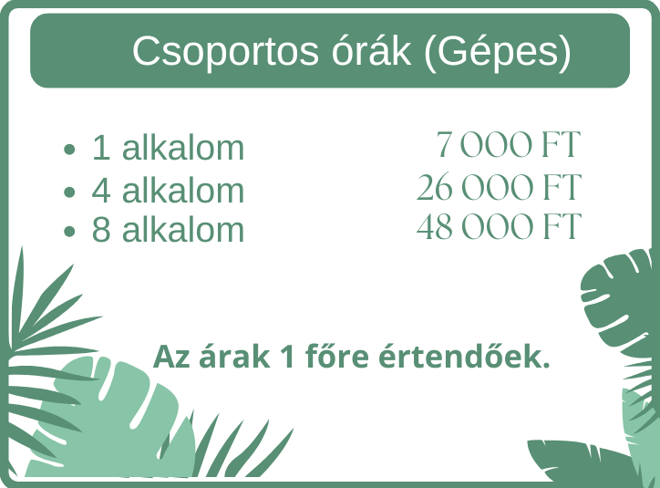 - A PÁROS ÓRA ÉS BÉRLET DÍJAK 1 FŐRE VONATKOZNAK!