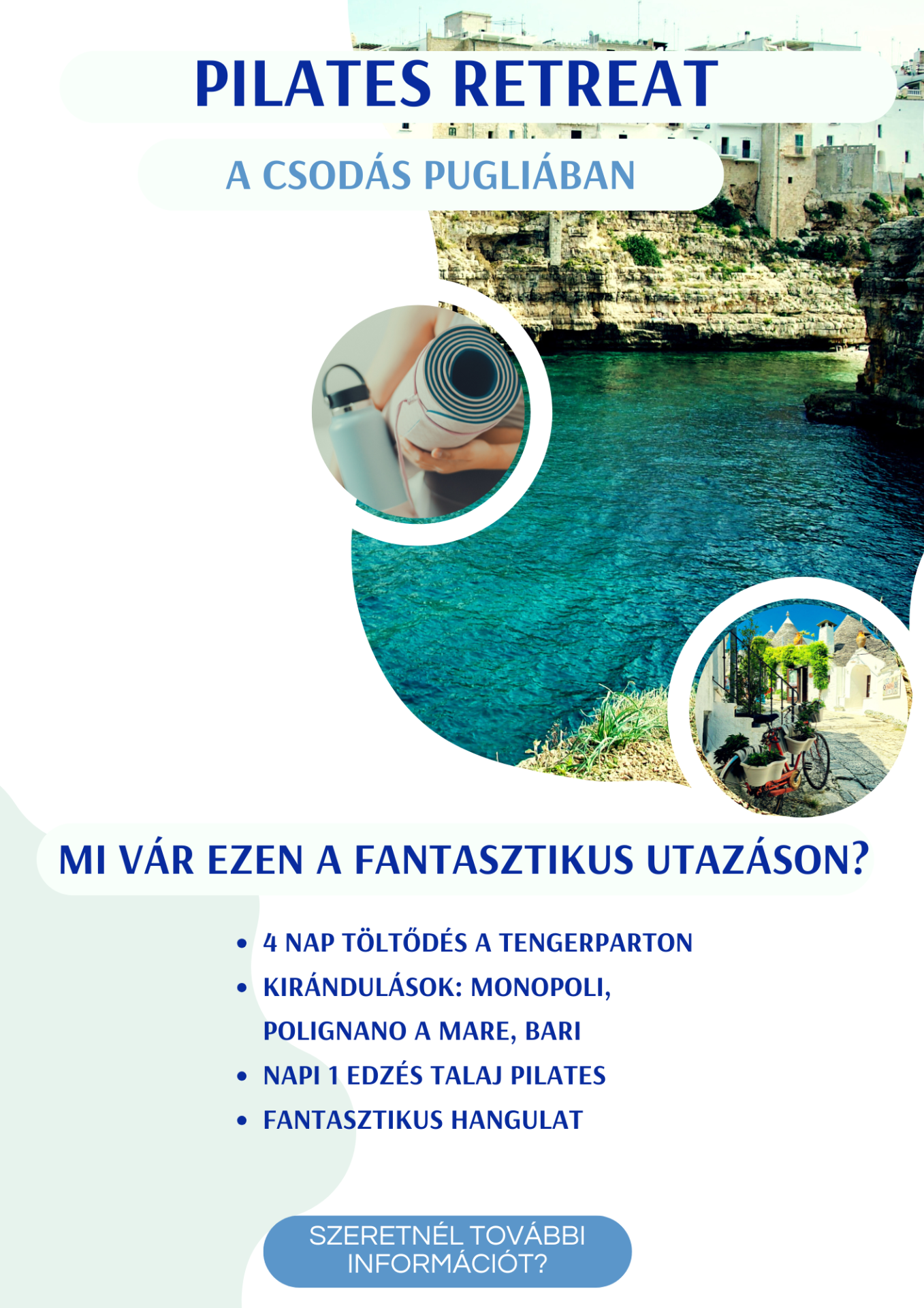 JÚNIUS: PUGLIA,OLASZORSZÁG - PILATES+TENGER+KIRÁNDULÁSOK
